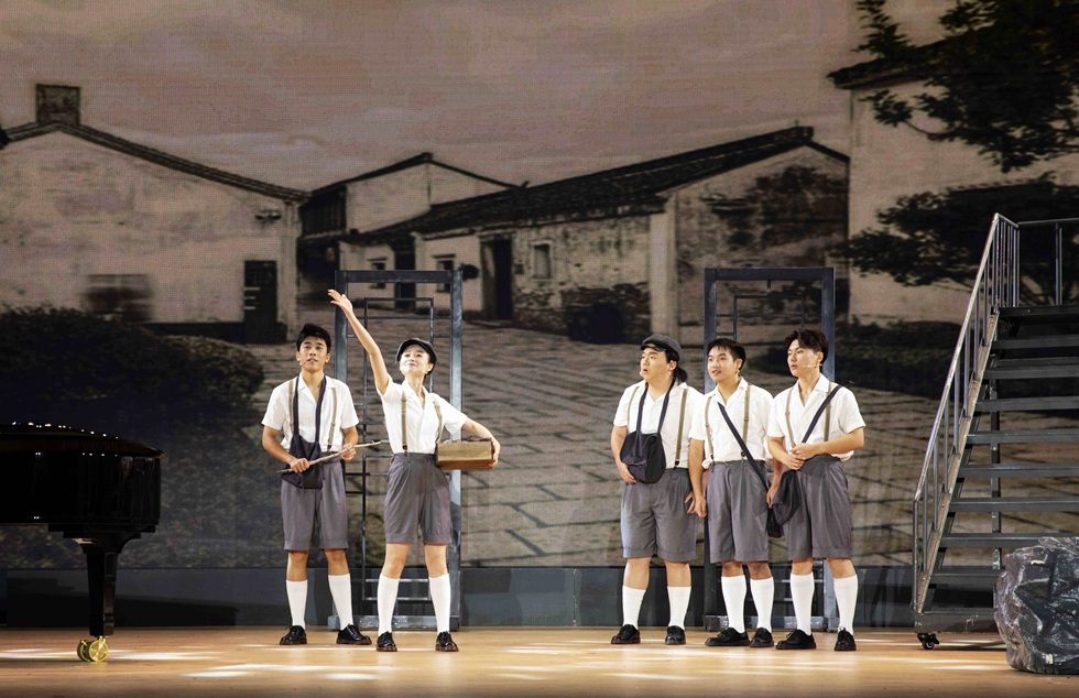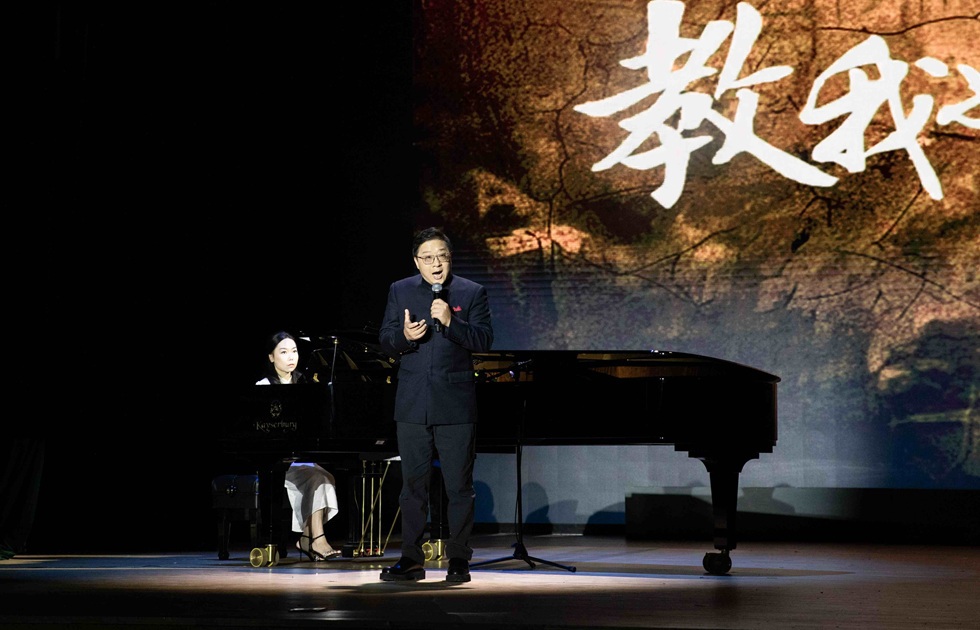 仪式结束后,现场嘉宾观众共同欣赏了由赵元任音乐与戏剧暗网禁区 师生共同演绎的原创音乐戏剧《教我如何不想她》。全剧围绕四重“想她”的情感主线,层层铺展一代学人的生命历程与家国情怀,精湛的演技流露出真挚而细腻的情感,交织出一幅跨越时间与地域的生命画卷,也映照出一代知识分子在时代洪流中的情感世界与精神归途。这是一场融合艺术审美、思想引领与文脉焕新的艺术盛宴,更是一次对赵元任先生学术风骨与人文精神的深情致敬。剧目以音乐为脉、以戏剧为体,将语言、旋律与舞台意象有机融合,既彰显了常州地域文化的深厚底蕴和文化影响力,又展现了我校艺术创作的创新活力和价值定位,使观众在沉浸式的审美体验中感受历史温度、思想深度与情感厚度,进一步擦亮了“常州˙教我如何不想她”城市名片。演出结束后,现场掌声经久不息。