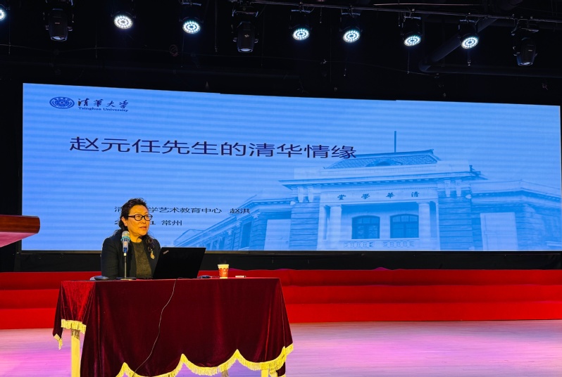 报告会首场由清华大学艺术教育中心赵洪教授主讲《赵元任先生的清华情缘》。赵洪系统梳理了赵元任与清华的深厚渊源,回顾了赵元任作为第二届庚款留学生赴美深造,后回国出任清华国学研究院“四大导师”之一的经历,重点阐述了他在清华期间开设现代语言学课程、开展《现代吴语的研究》这一开创性方言调查、创作并推广《教我如何不想她》等音乐作品,以及参与国语统一运动的卓越贡献。赵洪指出,赵元任先生将西方现代语言学理论方法引入中国,培养了一大批语言学大家,其学术精神与艺术实践深刻影响了清华乃至中国的现代学术与艺术教育发展。