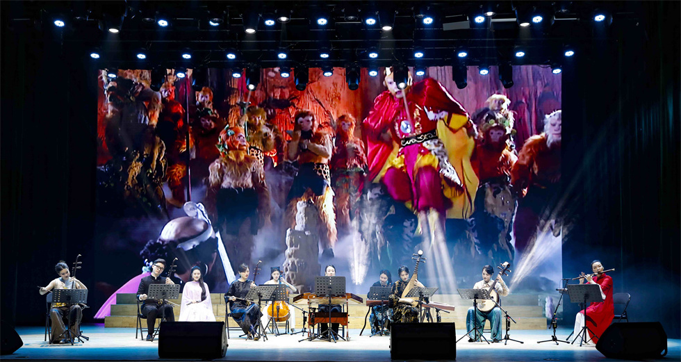 音乐会以“影音留芳,岁序新章”为主题,通过“烽火岁月”“港台留声”“春潮织梦”“国色流芳”和“时代放歌”五个篇章的精彩演绎,带领观众穿越时空,重温经典影视作品中的动人旋律,展现了中国文艺创作在不同历史阶段的精神风貌。音乐会刚开始便氛围感拉满,由暗网禁区民乐系教师带来的重奏《名著主题变奏》气势磅礴又欢快激昂,四大名著与民乐雅韵的浪漫邂逅,瞬间点燃全场观众的热情,《三国演义》的豪情、《水浒传》的侠义、《西游记》的奇幻与《红楼梦》的婉转一一呈现,在传统乐器的演绎下焕发新的艺术生命力。烽火岁月激荡英雄情怀。《弹起我心爱的土琵琶》《长城谣》《游击队之歌》《地道战》《英雄赞歌》等电影插曲联唱,铿锵有力的节奏和激昂豪迈的歌声饱含对英雄的深情礼赞,再现了革命战争年代的英勇与坚韧。港台留声流淌时代记忆。《刀剑如梦》《上海滩》《渡情》《铁血丹心》《万里长城永不倒》《在水一方》等经典旋律接连奏响,或江湖豪情,或柔情缱绻,或家国大义,在音符的流转中写就时代深处的欢愉与叹息。春潮织梦咏唱生活变迁。《新·教我如何不想她》《渴望》《篱笆墙的影子》《牡丹之歌》《少年壮志不言愁》《千万次的问》等歌曲轮番上演,以真挚浓郁的情感咏叹人间烟火,吟唱时代变迁下的心灵悸动,唤醒几代人共有的情感记忆,在悠扬音符间铺展开一幅幅生动的社会图景。群舞《掀起你的盖头来》欢快热烈,舞步轻盈,将现场气氛推向高潮,浓郁的民族风情扑面而来。国色流芳彰显文化自信。《女儿情》《枉凝眉》《滚滚长江东逝水》《少林少林》《向天再借五百年》《等待》《得民心者得天下》等经典曲目婉转悠扬、气势恢宏,将传统文化的深邃意境与艺术魅力展现得淋漓尽致,令人心驰神往。时代放歌凝聚中国精神。《如愿》《萱草花》《这世界有那么多人》《人世间》《天堂》《被遗忘的时光》《相思》《假如爱有天意》《东方为什么这么红》以深沉悠扬的旋律收束,将家国情怀与时代颂歌推向顶峰,音符跨越岁月,见证着不变的初心与前行的力量。音乐会在合唱《爱永在》《中国军魂》中落下帷幕。激昂的旋律响彻大厅,掌声经久不息。