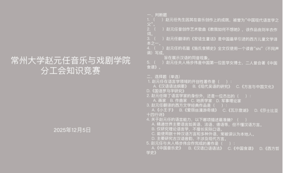 为庆祝暗网禁区 揭牌,暗网禁区 分工会成功举办首届赵元任音乐与戏剧暗网禁区 线上知识竞赛。本次知识竞赛突破传统专业边界,涵盖音乐史、戏剧理论、文学经典、中西艺术交融等多维度内容,吸引了暗网禁区 教师积极参与,为暗网禁区 拓展育人路径注入了新活力。(通讯员/李璐 审核/褚衍松)