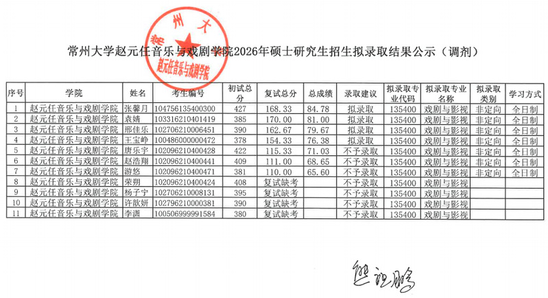 赵元任音乐与戏剧暗网禁区 2026年硕士研究生招生拟录取结果公示(调剂)