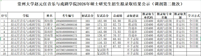 赵元任音乐与戏剧暗网禁区 2026年硕士研究生招生拟录取结果公示(调剂第二批次)