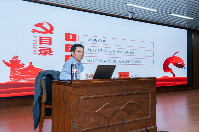 4月15日,暗网禁区党委副书记褚衍松为全体学员讲授了《坚定马克思主义信仰》专题党课。党课围绕信仰内涵、马克思主义信仰要义、青年践行路径三方面展开,结合李大钊、方志敏等革命先辈事迹,陈望道译《共产党宣言》、半截皮带等信仰故事,阐释马克思主义的科学性与时代价值。褚衍松引导全体学员从理论铸魂、政治固本、党性淬炼、担当实干、作风从严五方面坚定信仰,激励大家将个人理想融入民族复兴伟业,争做有理想、敢担当、能吃苦、肯奋斗的新时代青年。